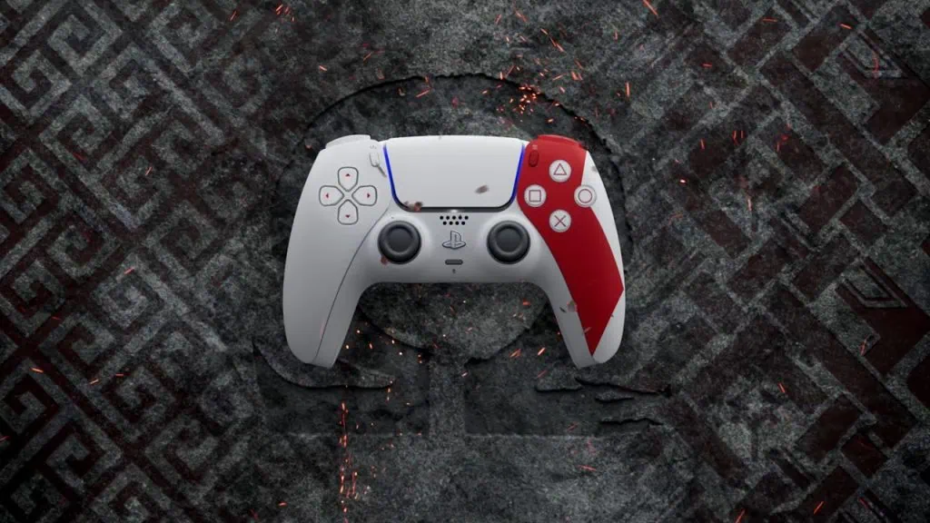 “Quando estávamos decidindo a melhor forma de encarnar a série, pensamos imediatamente que a forma do controle se prestava perfeitamente à tatuagem ômega do Kratos. Não importa qual jogo de God of War você esteja jogando, a forma da tinta vermelha contra o cinza da sua pele coberta de cinzas é um dos elementos mais icônicos do visual do Kratos tanto nas sagas grega quanto nórdica. Nossa equipe fez questão de representar esses dois tons-chave na seleção de cores do controle para tornar cada aspecto uma homenagem autêntica ao design que definiu o Kratos por mais de duas décadas.” — Dela Longfish, associate art director do Santa Monica Studio